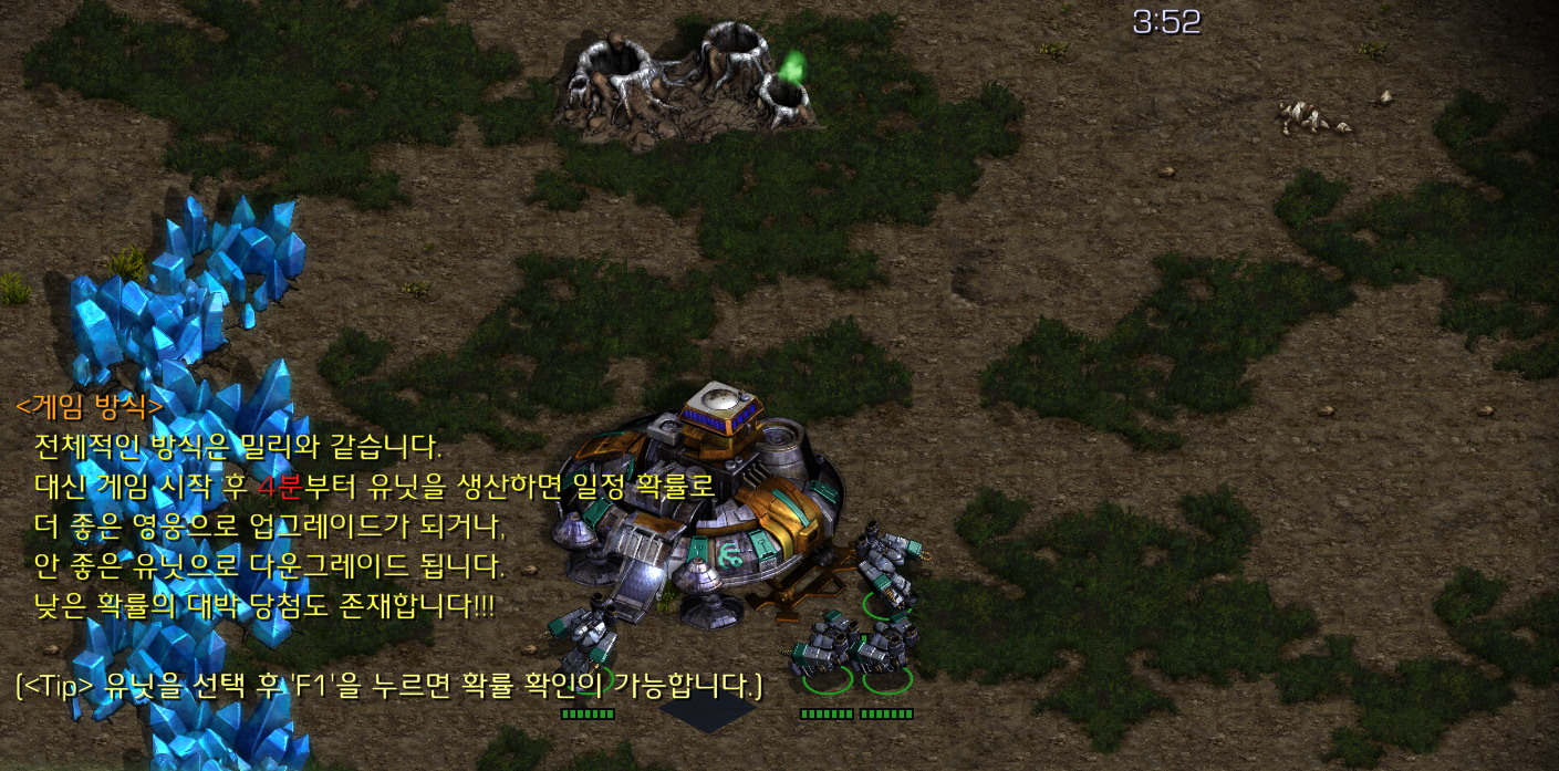 - 초당 미네랄4, 가스2 추가 자원 획득 (방제 또는 인게임에서 설정)