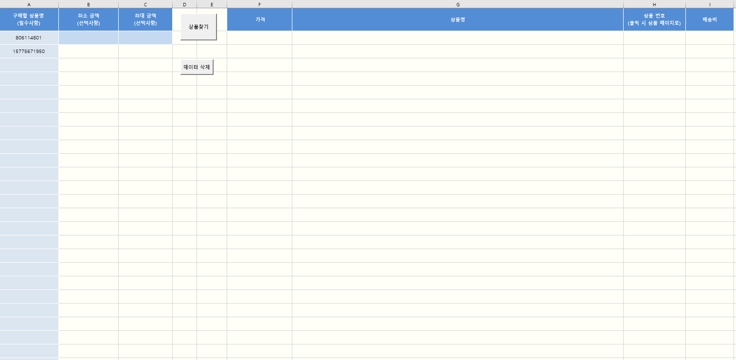 https://godofexcel.tistory.com/106 [엑셀vba] 쿠팡 상품을 스크래핑해보자 (업데이트 버전) 예전에 엑셀vba로 쿠팡에 있는 상품 목록을 스크래핑 하는 프로그램을 만들어봤었다. 기존에 몇가지 기능을 추
