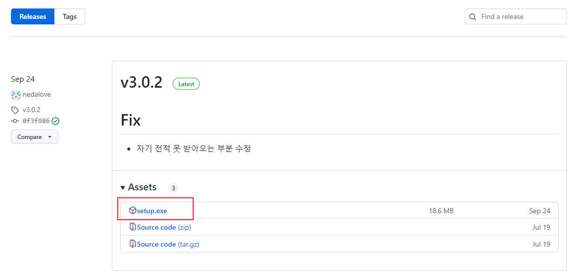 가장 최근 버전 setup.exe 다운로드하여 설치하자.