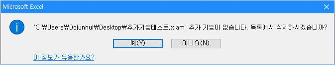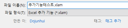 코드 작성이 끝났으면 엑셀파일을 .xlam 확장자로 저장해야한다.