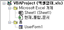 엑셀을 실행시키면 열린 엑셀파일은 재빨리 눈 앞에서 사라지고 사용자 정의폼을 실행시킨다.