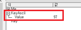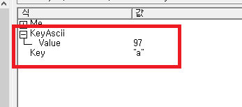 소문자 a를 입력하면 여기에 해당하는 아스키코드값인 97이 전달되고