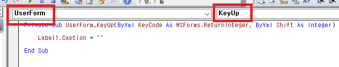 Private Sub UserForm_KeyUp(ByVal KeyCode As MSForms.ReturnInteger, ByVal Shift As Integer)