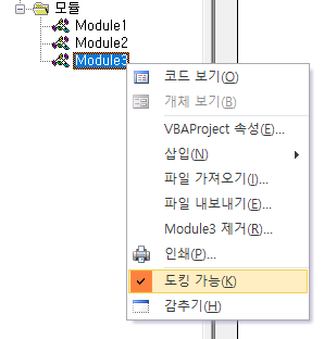 엑셀vba를 사용하다가 모듈을 추가했는데 그 수가 많을 때