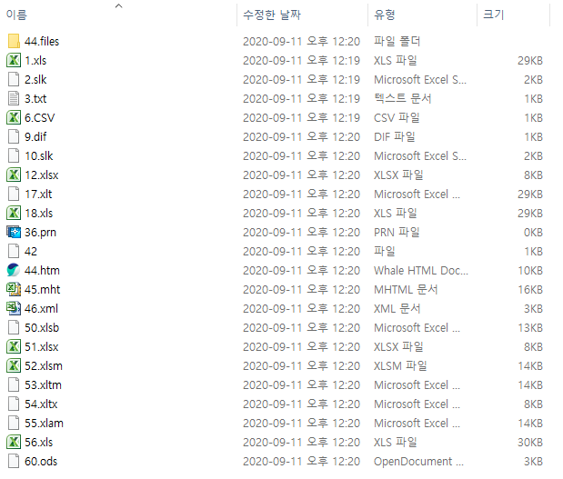 각 숫자들이 어떤 확장자로 저장되는지 확인하기 위해 테스트를 해봤다.