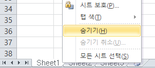일반적으로 시트 숨기기 하면 시트 우클릭하여 숨기기 버튼만 누르면 되는데