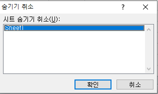 숨기기 취소에는 Sheet3만 나타난다.