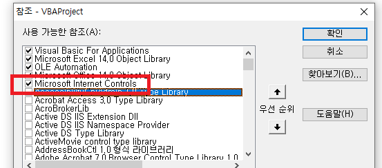 VB편집기에서 Microsoft Internet Controls를 참조 추가하면 준비 끝