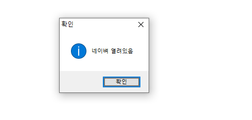 여기서 쓰인 코드는 네이버 창이 있으면 메세지 팝업창을 띄우고 매크로를 종료하도록 만들었다.