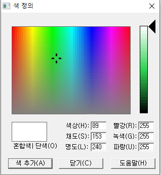 맨아래 두 줄에서 아무 칸이나 마우스 오른쪽 클릭을 하면 색 정의 창이 나타난다.