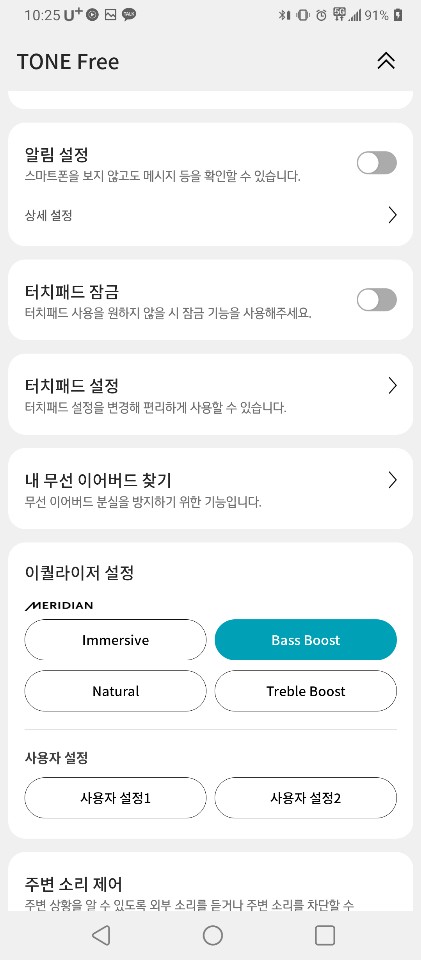 이대로 사용해도 큰 문제는 없지만 사용설명에 나온대로 플레이 스토어에서 TONE Free 어플을 받아서 상세 설정도 해보았다.