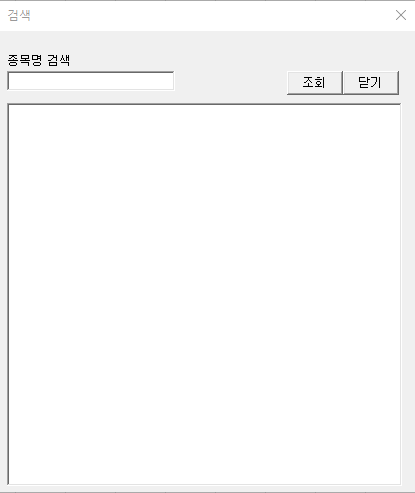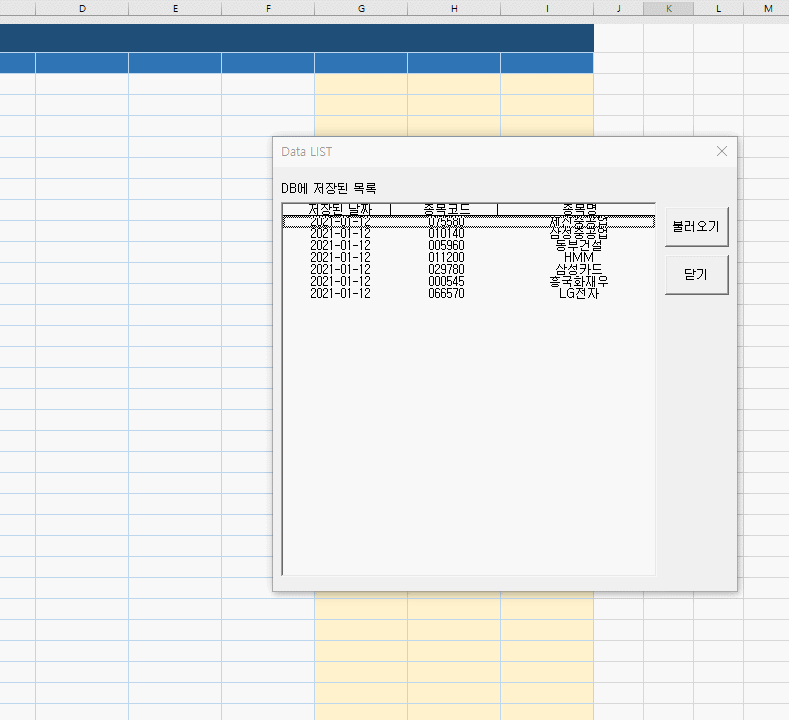 - 엑셀 시트에서 '종목 찾기' 버튼을 눌러 폼을 띄운다.