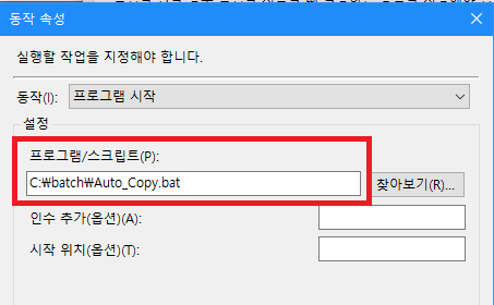 배치파일은 간단하게 로그 파일을 공유폴더로 복사하는 copy 명령어만 사용했다. 그리고 주기적으로 배치파일을 실행하기 위해 작업 스케줄러를 이용하였다.