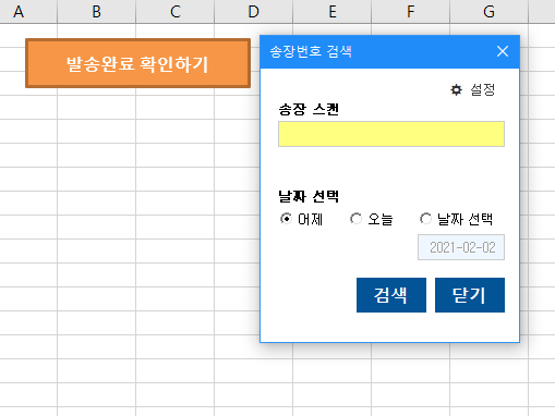 발송 확인 프로그램과 별개로 DB에 데이터를 넣는 VBA코드는 따로 만들어서 사용하고 있다.