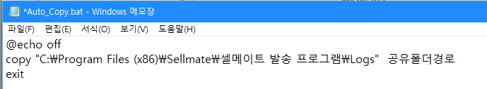 copy "C:\Program Files (x86)\Sellmate\셀메이트 발송 프로그램\Logs" c:\test