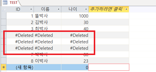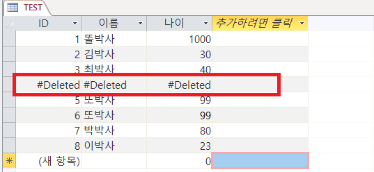 업데이트 쿼리의 교훈을 무시하고 이렇게한다면 TEST 테이블의 모든 또박사가 삭제된다.. 조건은 정확하게 만들자.