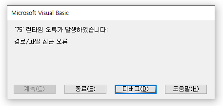 런타임 75 오류가 발생하는 것을 확인할 수 있다.