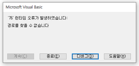 - 런타임 76 오류: 경로가 잘못됐을 때 나타나는 오류