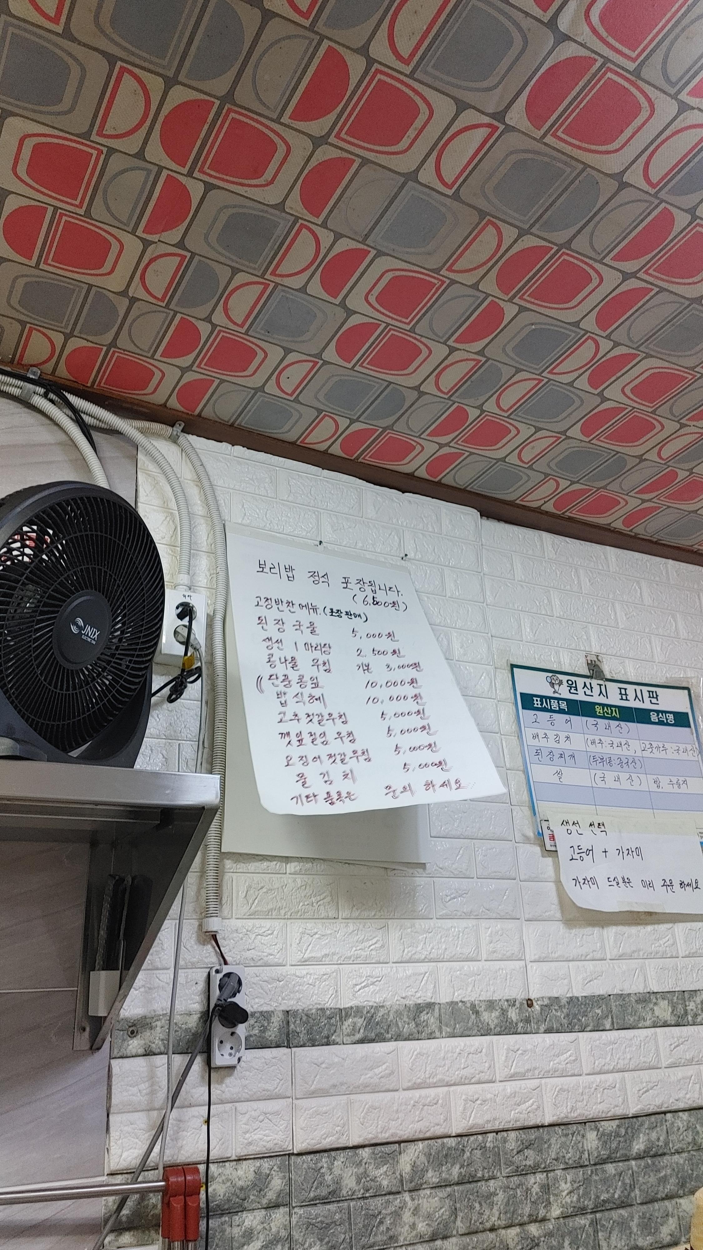 자리에 앉으니 쌀밥 또는 보리 섞은 밥 할지 물어보신다. 우린 쌀밥, 보리밥 2개씩 시켰고, 음식이 나올 동안 대기하였다.