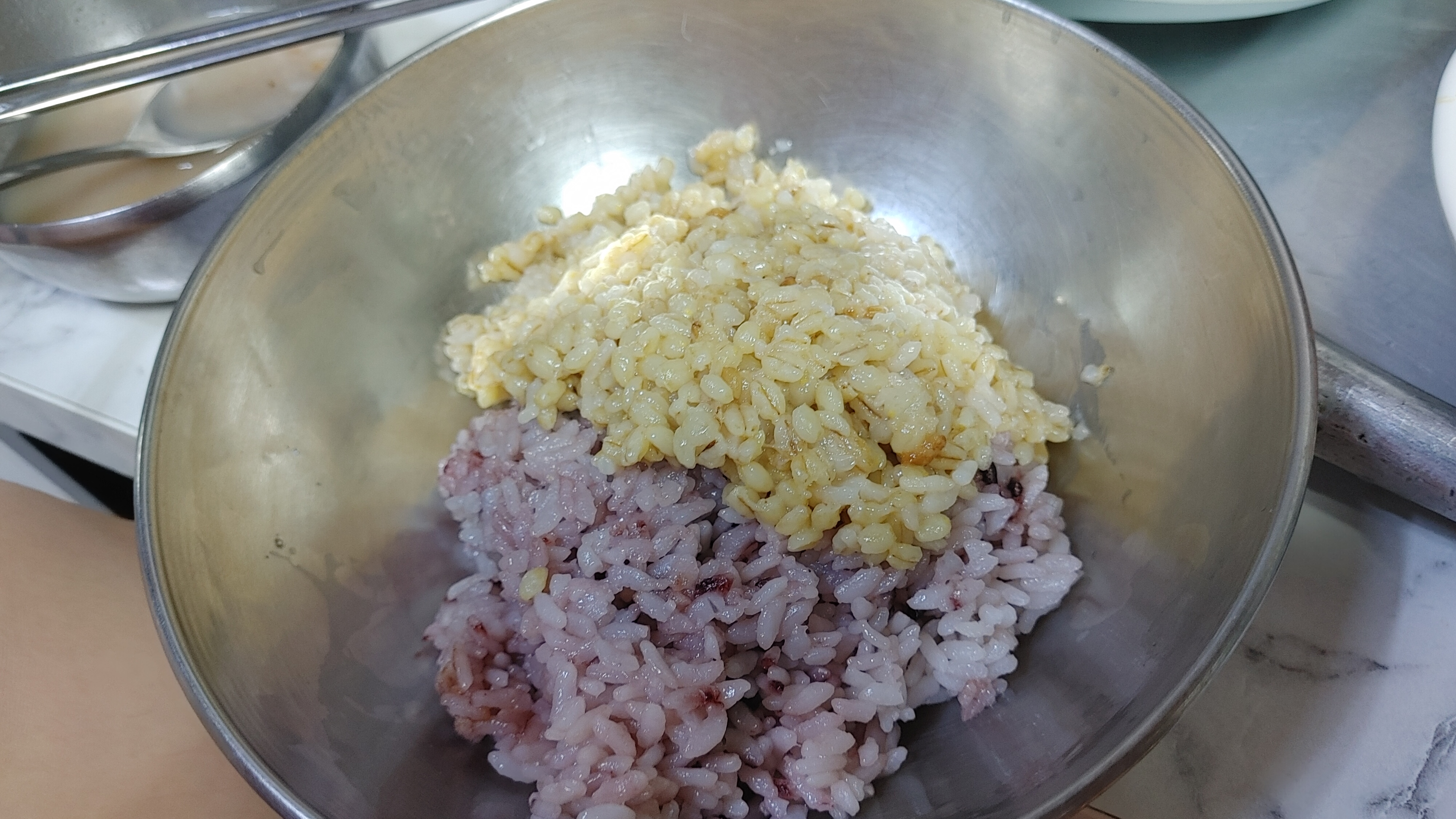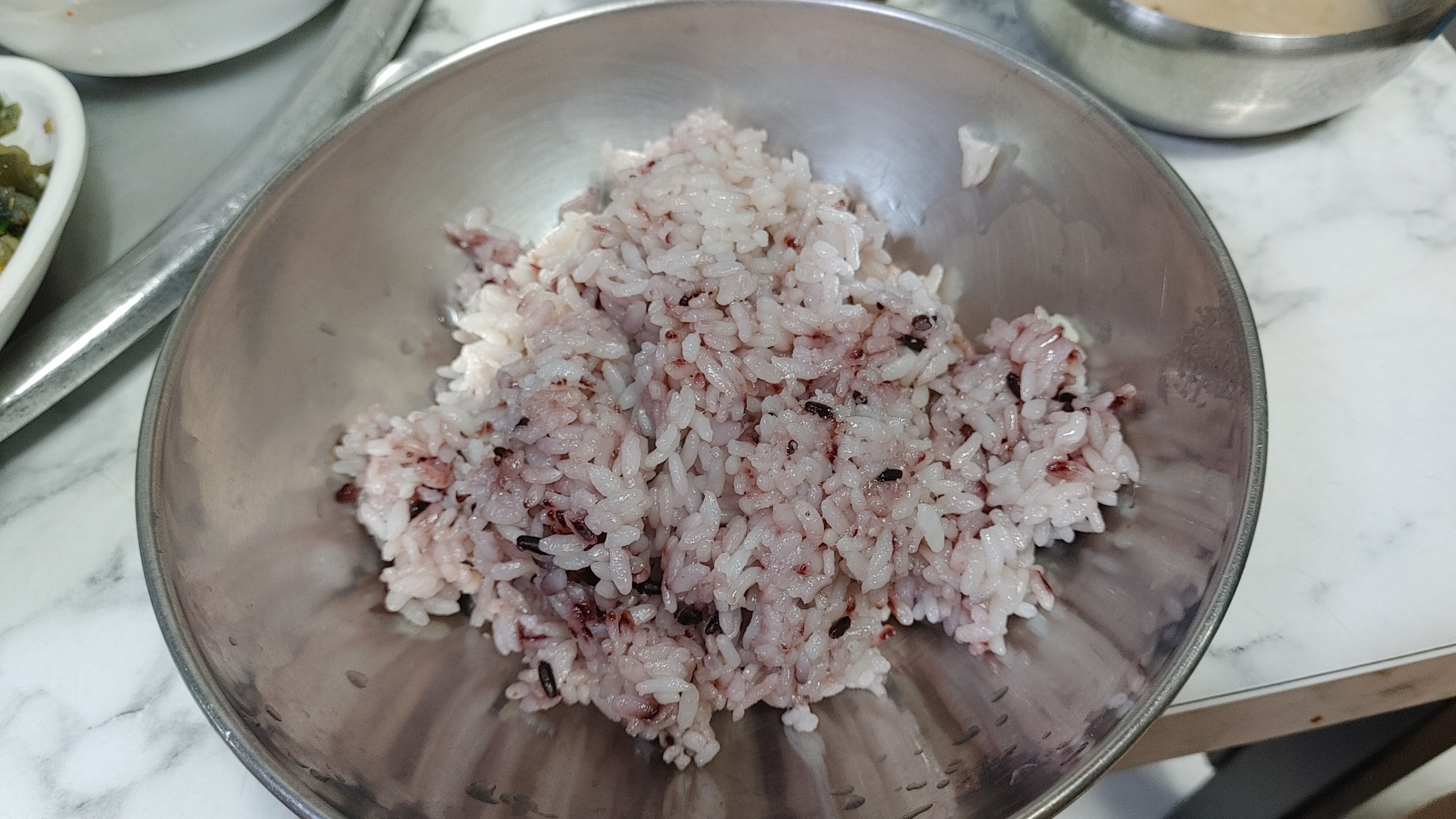 쌀이 들어갔으니 쌀밥은 맞는거 같다. 하지만 내가 생각한 건 흰쌀밥이었는데, 흑미밥이 나왔다. 원래 흑미밥인건지 매일 바뀌는건지는 모르겠으나 맛있으면 된거아니겠는가. 게다가 일반 음식점의 공기밥에 비해 3배 정도 되는것 같다.