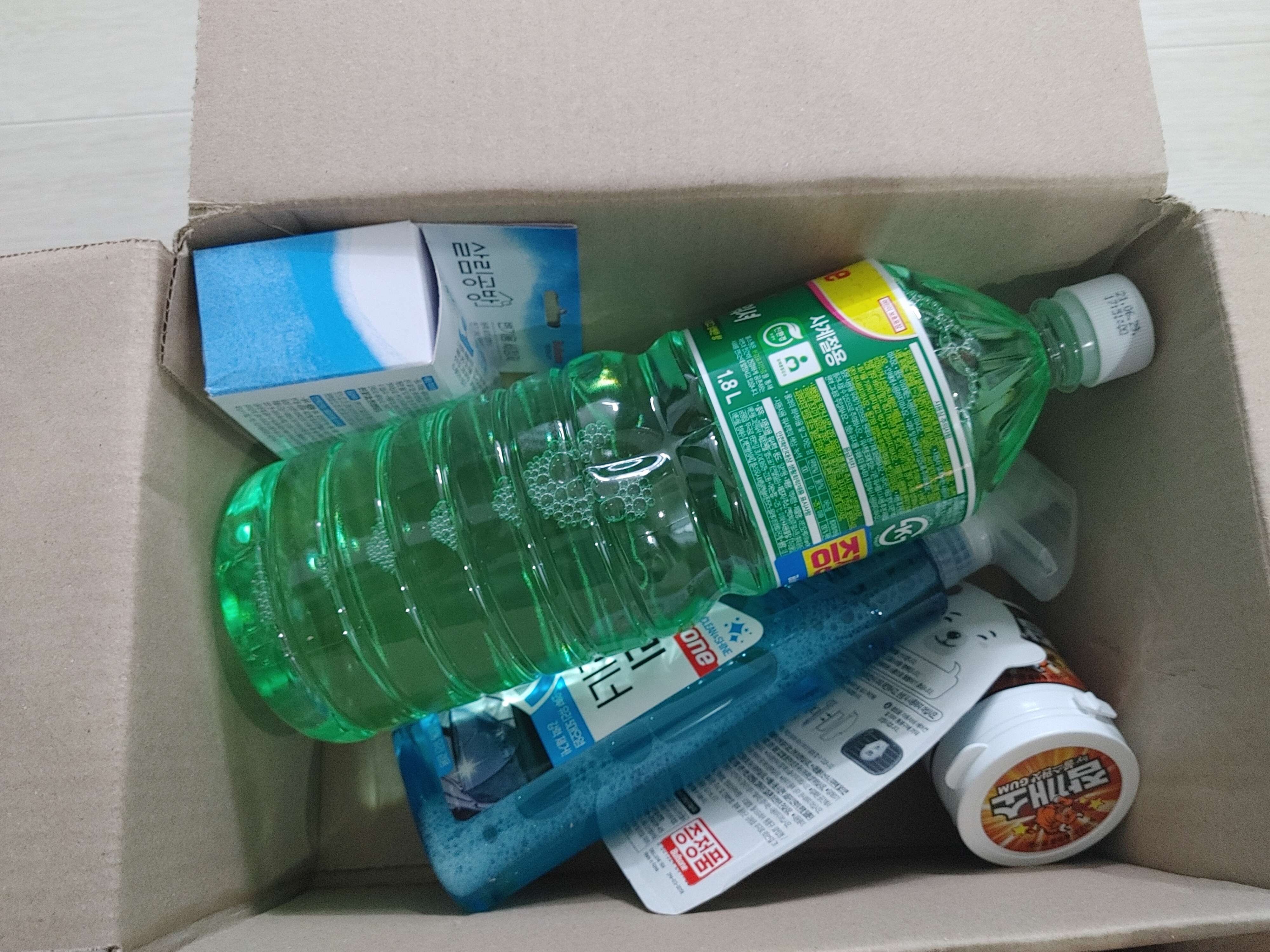 상당히 묵직했던 랜덤박스. 분명히 워셔액은 들어있을 법한 무게였다.
