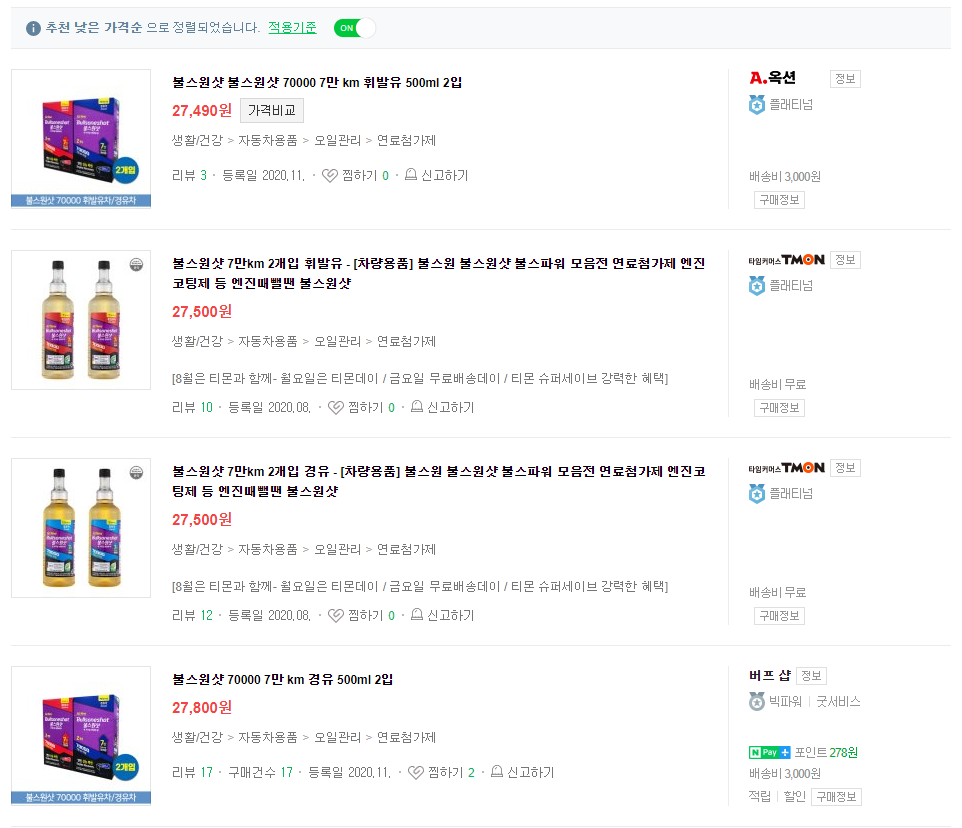 다양한 차량 용품들이 있었지만 나는 한 번씩 사용하는 불스원샷 엔진때 제거하는 녀석을 골랐다.