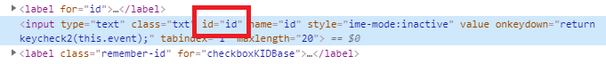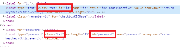 옥션의 경우 아이디와 패스워드 입력하는 곳의 Class가 동일하다.