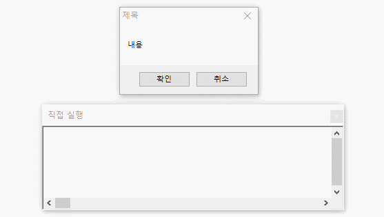 필자는 본 예시에서 vbOkCancel 상수를 넣었고 결과 확인, 취소 버튼으로 나타났다.