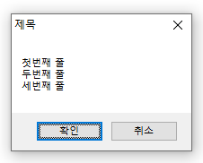 메세지 박스에 내용을 여러줄 넣고 싶을 땐 다음과 같이 해보자.